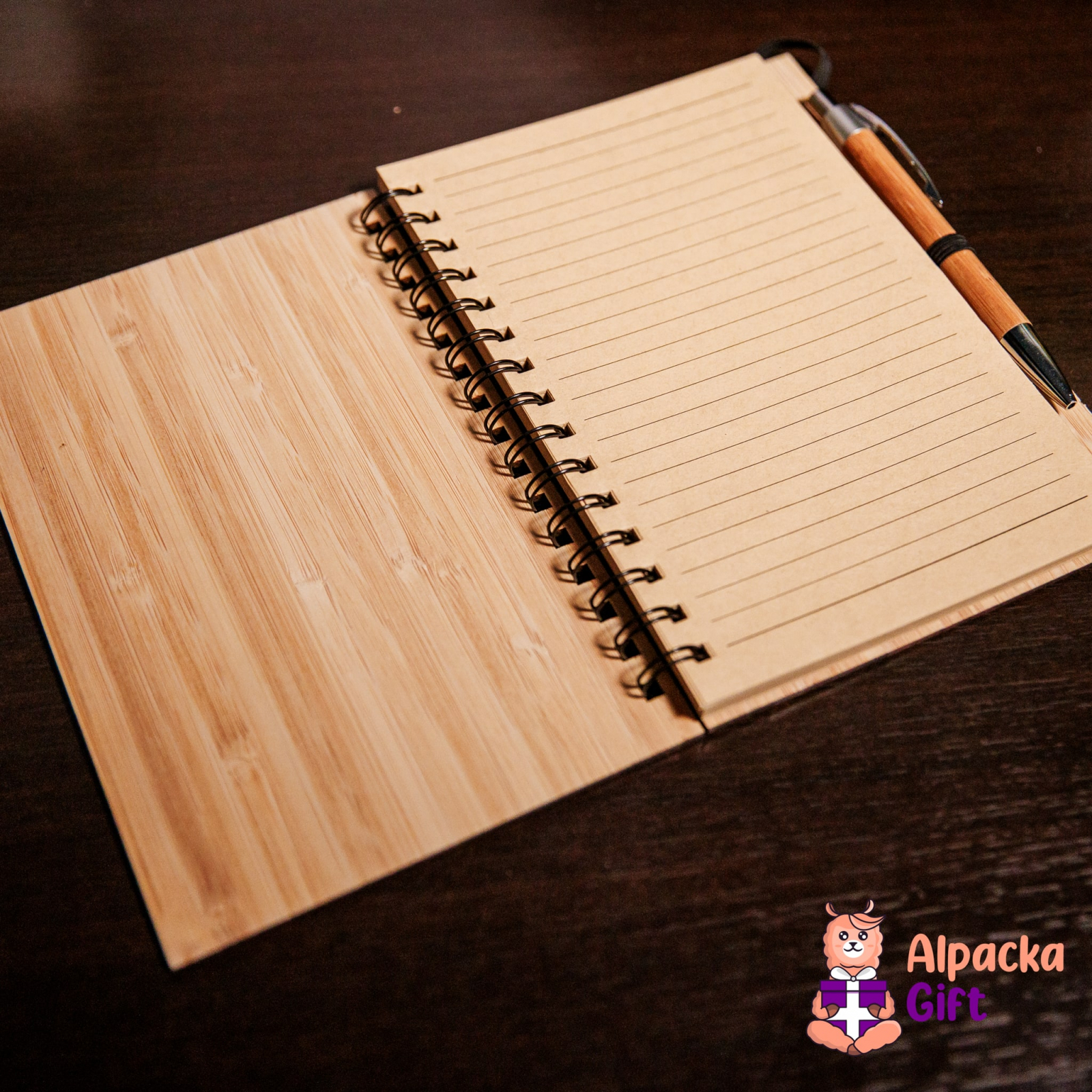 - Material: Coperta agendei precum si pixul sunt fabricate din lemn de bambus tratat pentru a le asigura durabilitatea și pentru a le scoate în evidență textura unică.
