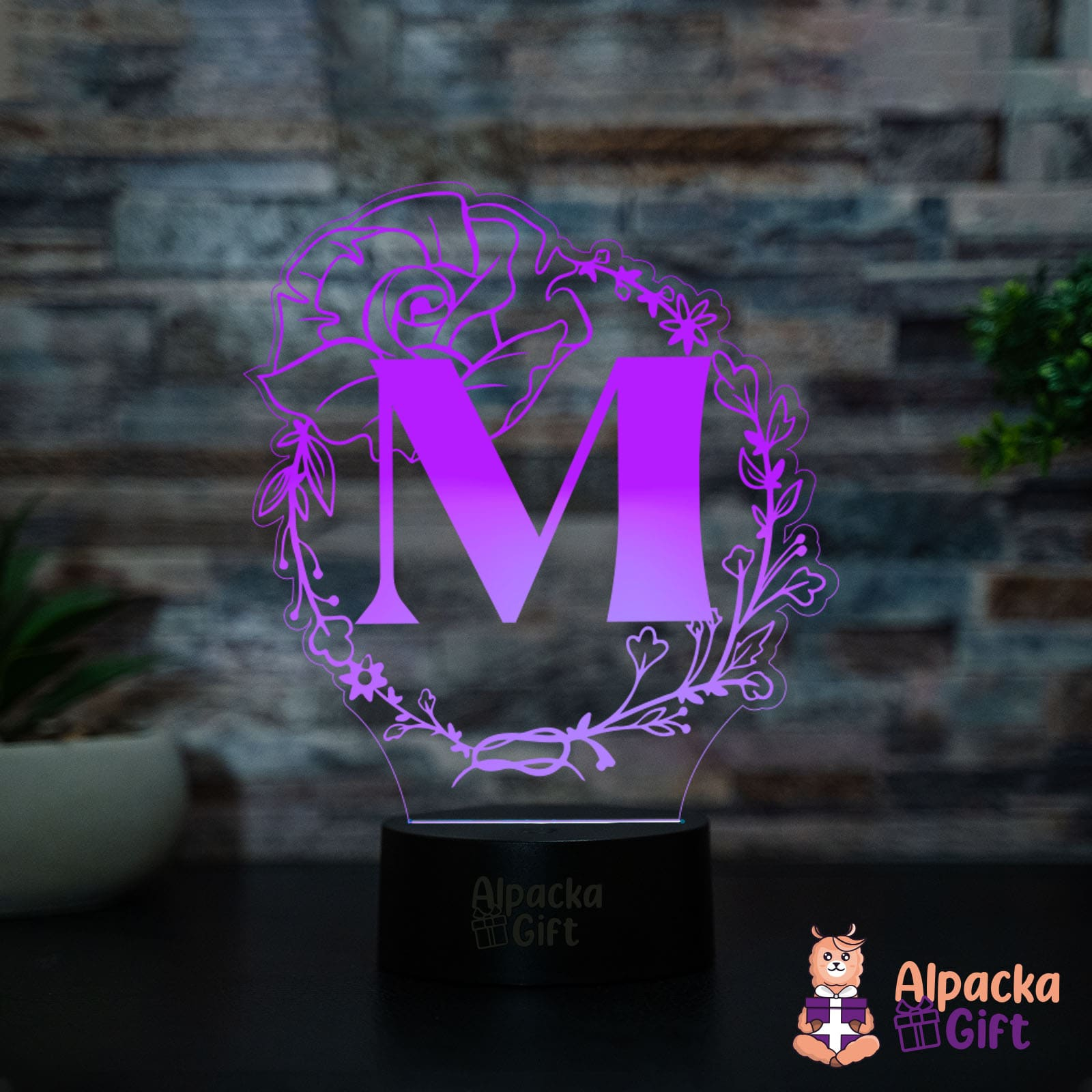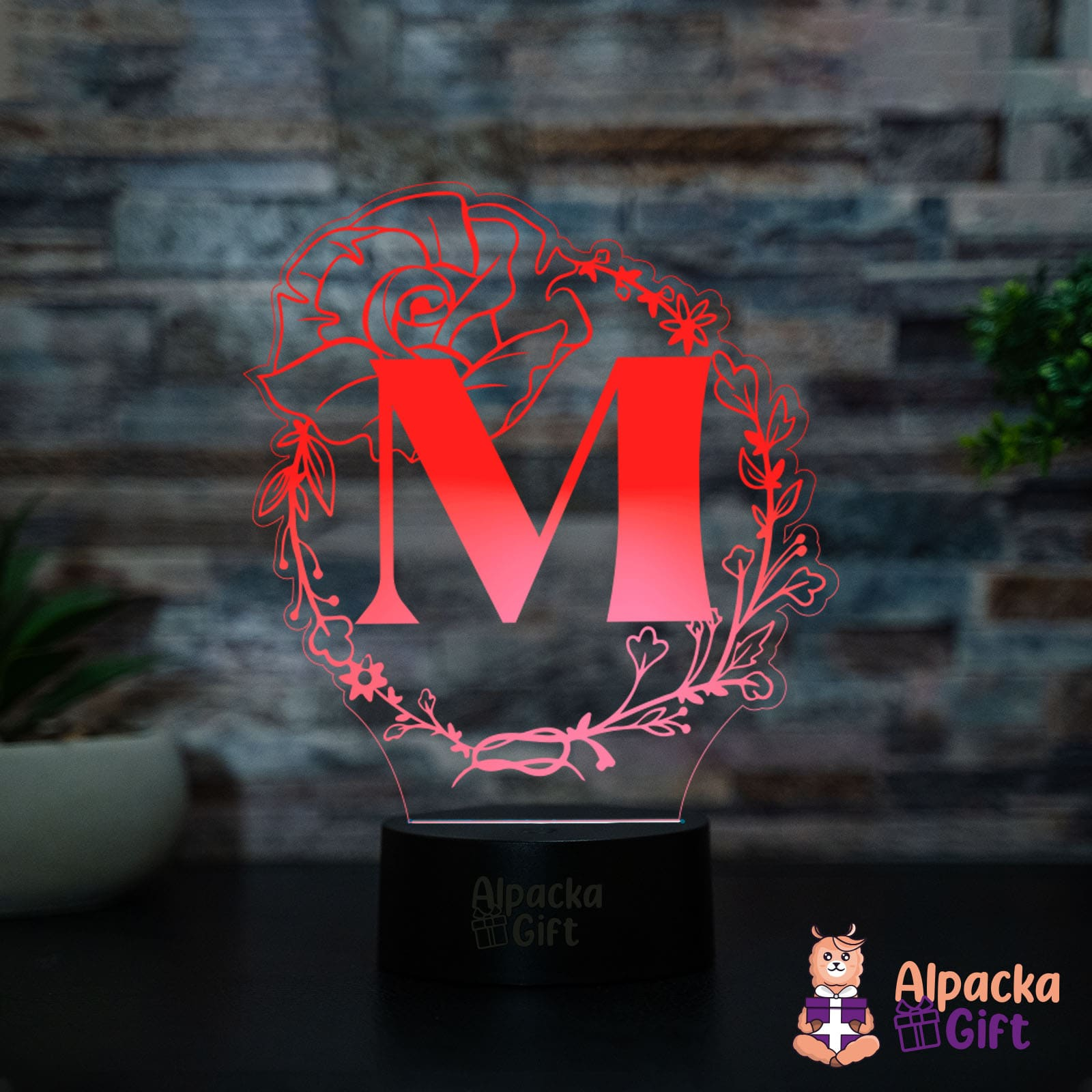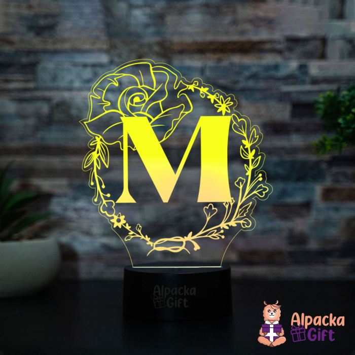 Initiala poate fi schimbata gratuit. In cazul in care campul aferent personalizarii va ramane necompletat, lampa va veni cu initiala "M" precum in imagine.