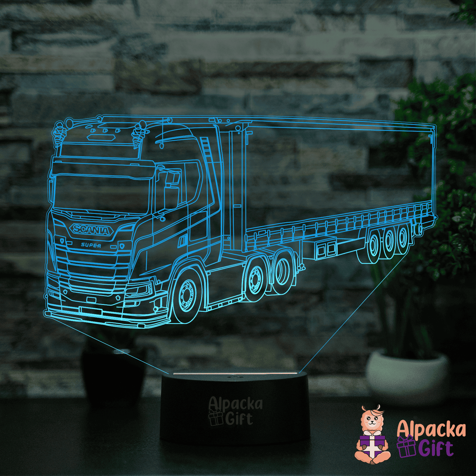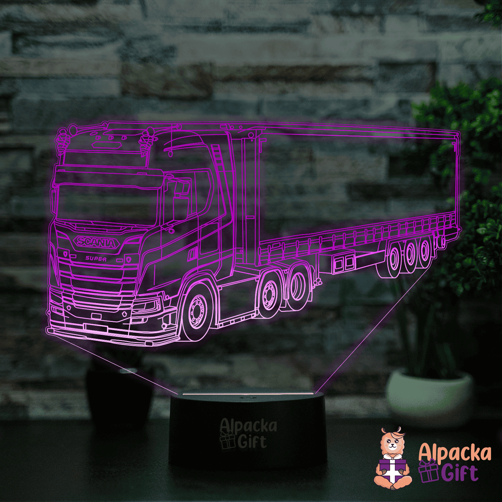 8 VARIANTE DE SUPORT Pe lângă numărul nelimitat de modele de lămpi, la Alpacka Gift poți alege dintre 8 variante de suport cu culori și specificații diferite. Astfel poți fi sigur că lampa se pliază pe nevoile și preferințele tale. Negru: 7 culori și 2 jocuri de lumini; Control prin Buton Tactil (pe suport); Conținut pachet: 1 x placă acrilică, 1 x suport cu tehnologie LED, 1 x cablu USB. Alb sau Negru cu Difuzor Bluetooth: 7 culori și 3 jocuri de lumini (include jocul de lumini în ritmul muzicii); Control prin Buton Tactil (pe suport); Boxă portabilă - se conectează prin Bluetooth la telefon și redă muzica; Conținut pachet: 1 x placă acrilică, 1 x suport cu tehnologie LED și difuzor Bluetooth, 1 x cablu USB. Alb Luminat: 16 culori și 4 jocuri de lumini; Control prin Telecomandă și prin Buton Tactil (pe suport); Posibilitatea de a porni/opri lampa, de a regla intensitatea luminii și de a schimba culoarea sau modul de iluminare din telecomandă; Suportul luminează și el în aceeași culoare ca și placheta acrilică; Conținut pachet: 1 x placă acrilică, 1 x suport cu tehnologie LED, 1 x telecomandă, 1 x cablu USB. Lemn cu Ulei Parfumat - Aromaoil: 7 culori și 2 jocuri de lumini; Control prin Buton Tactil (pe suport) + buton ON/OFF (pe spatele suportului); Încalzitor pentru ulei parfumat - evaporă uleiul răspândind în aer aroma acestuia; Material: lemn de bambus; Conținut pachet: 1 x placă acrilică, 1 x suport cu tehnologie LED și încalzitor pentru uleiul parfumat, 1 x ulei de lavanda 10 ml, 1 x cablu USB.