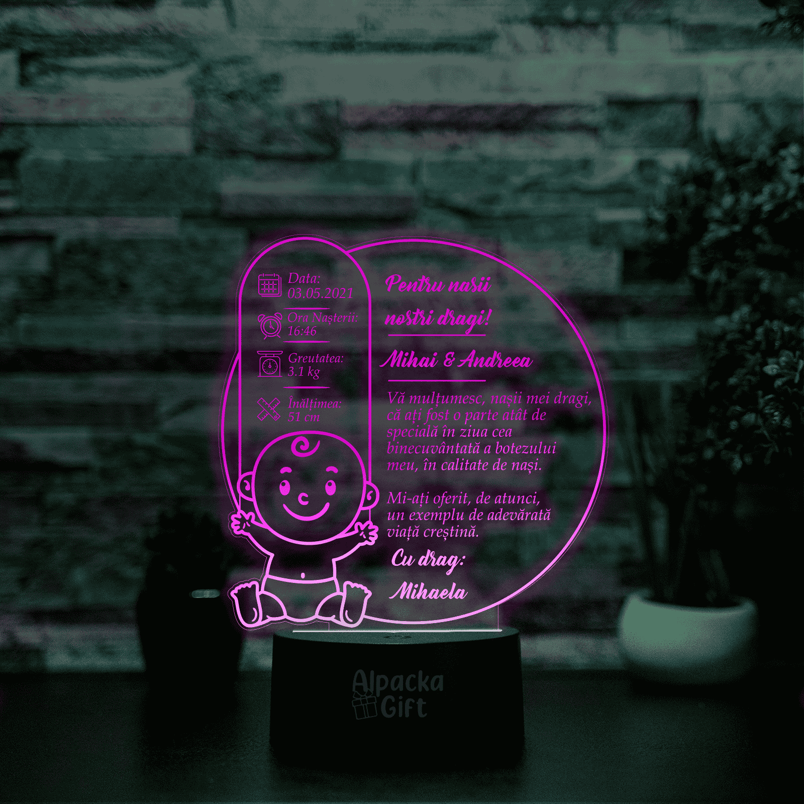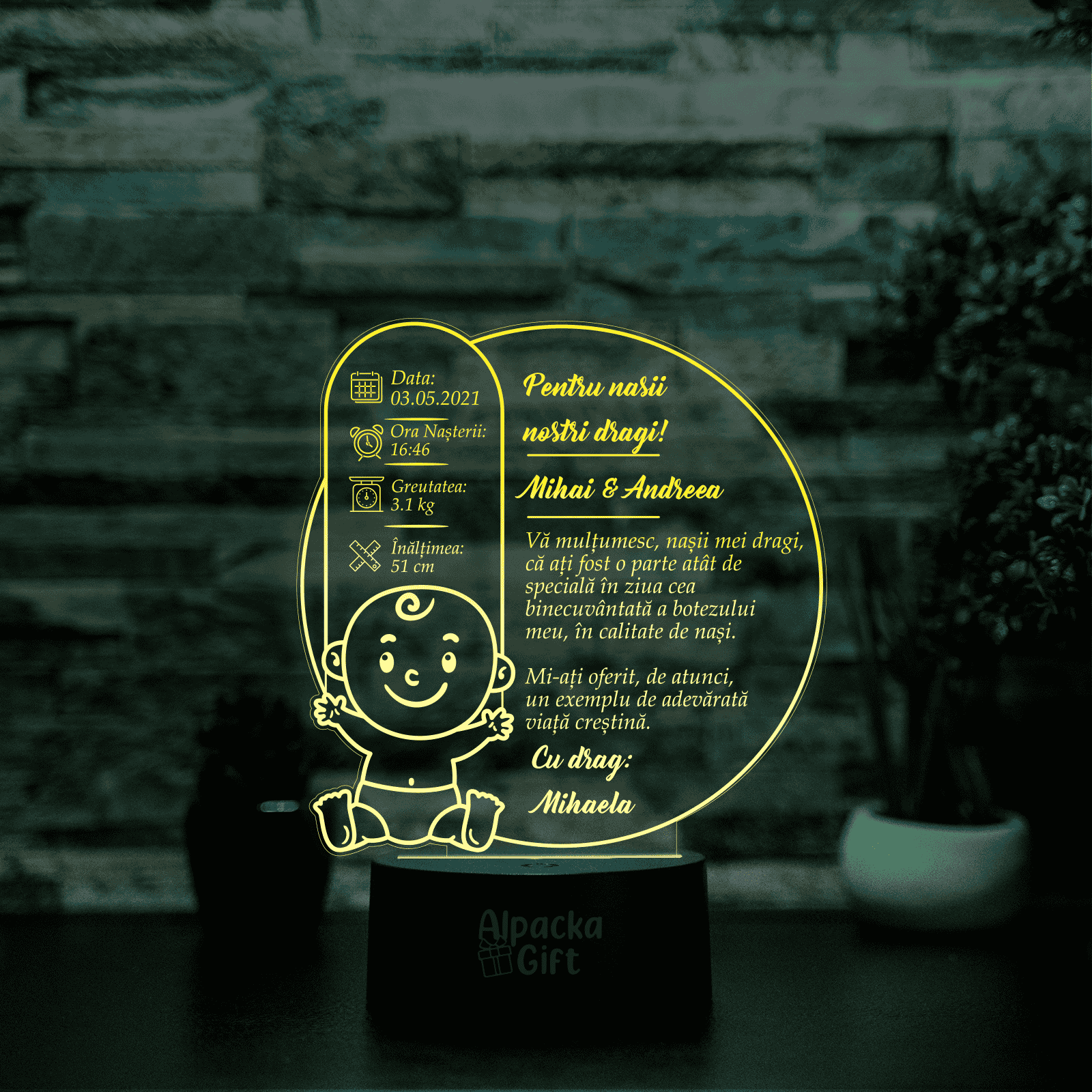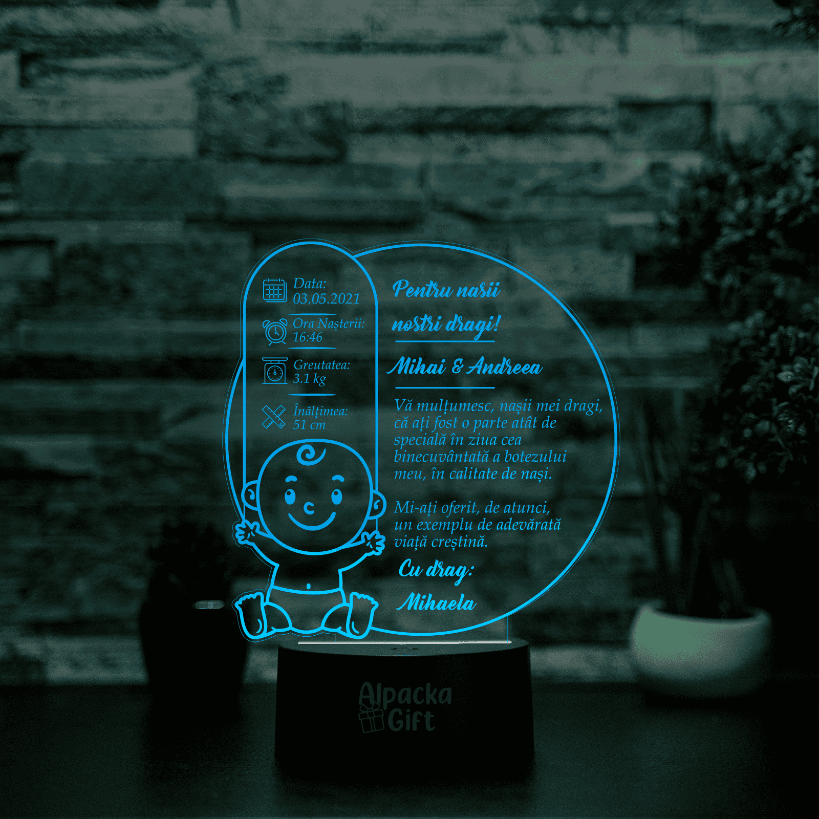 Textul poate fi personalizat gratuit. In cazul in care campul aferent personalizarii va ramane necompletat, lampa va veni cu textul din imagine.