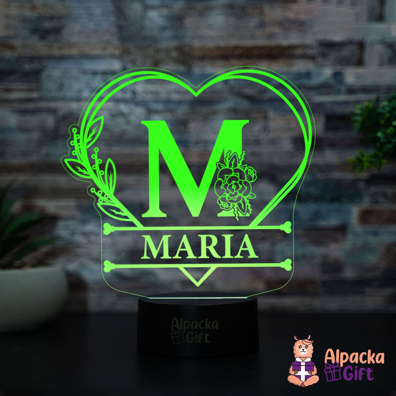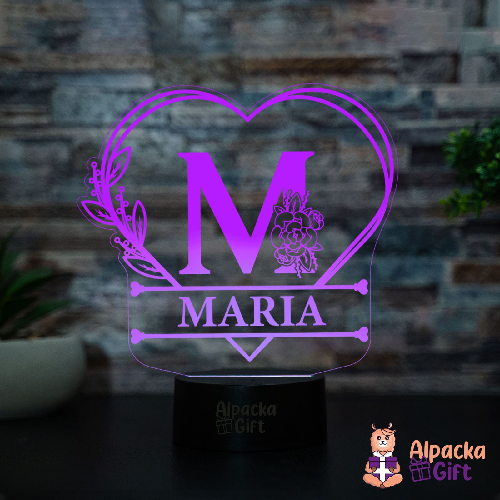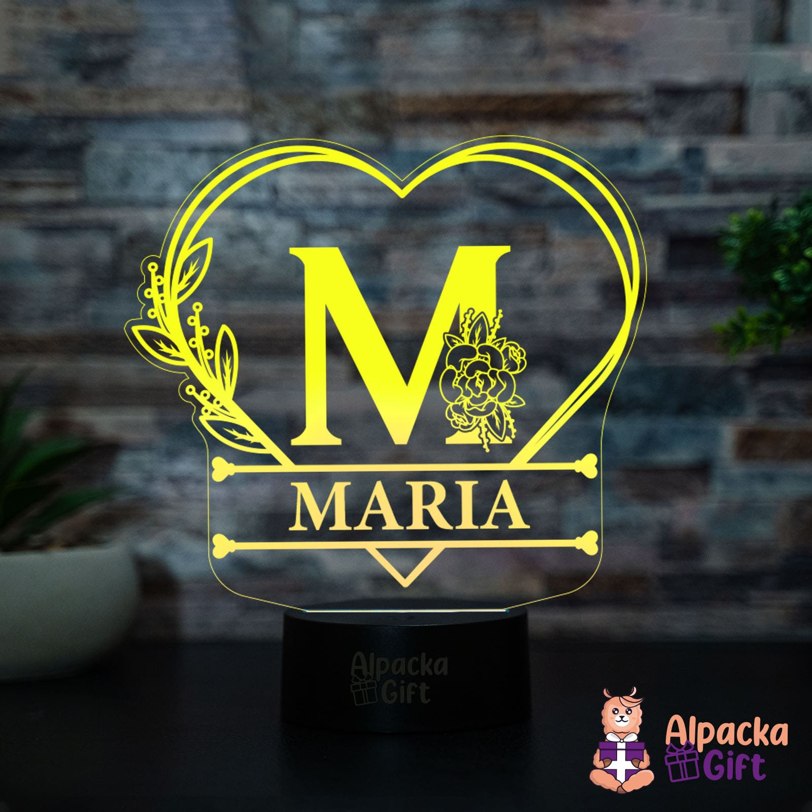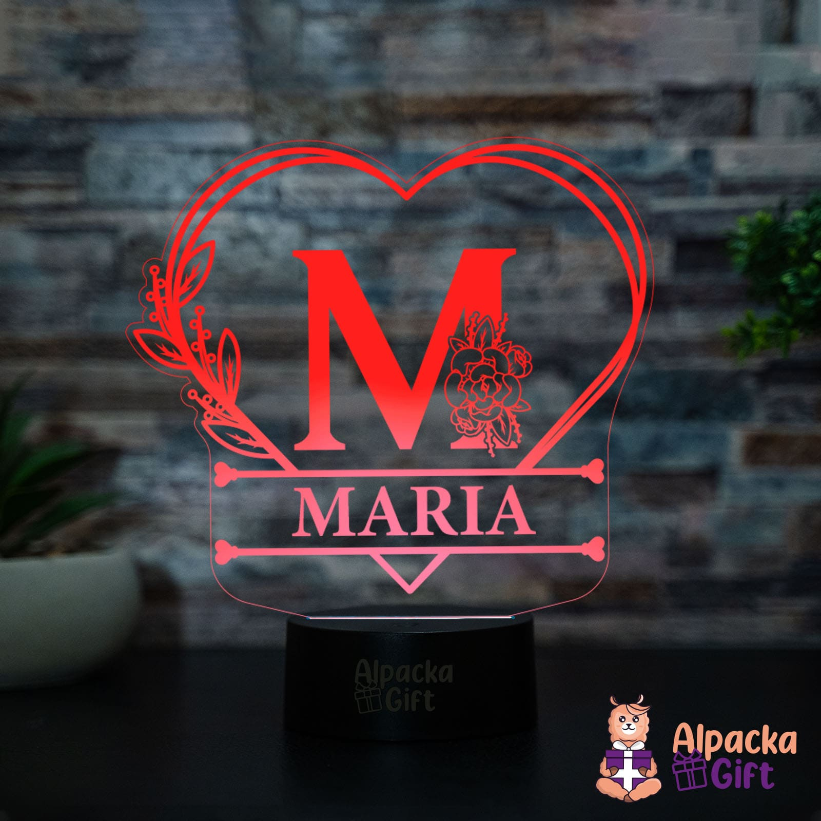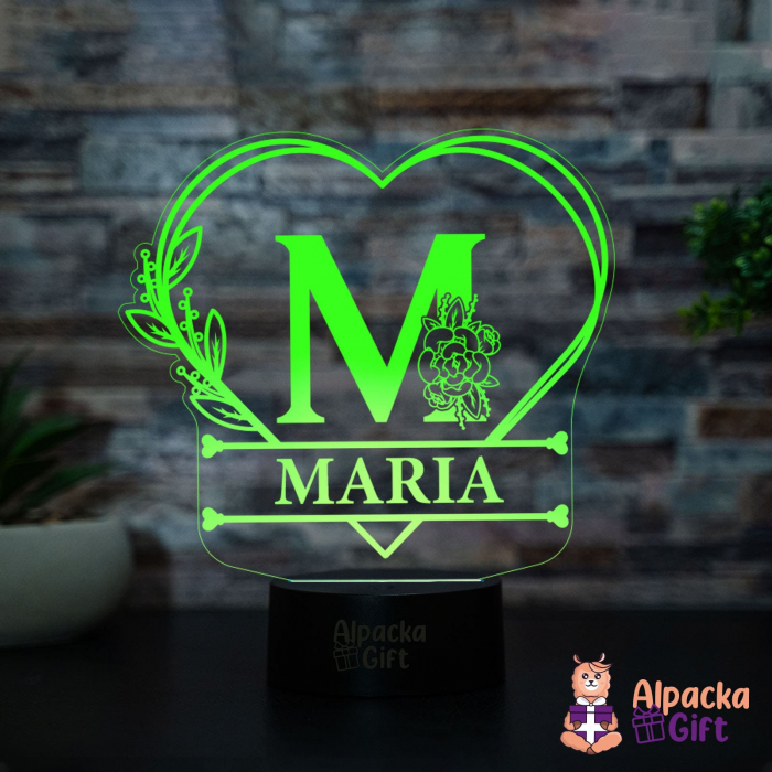 Lampa 3D - Initiala + Nume in Inima