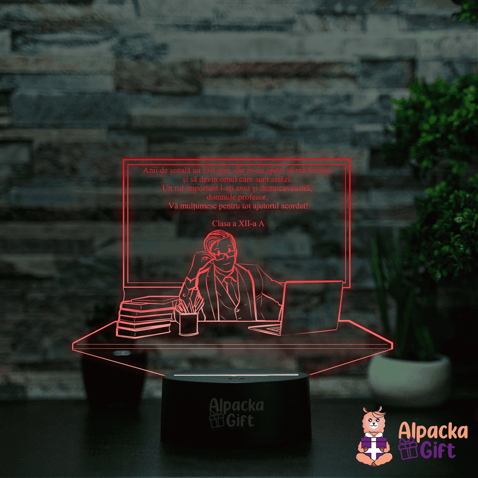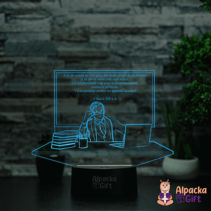 Textul poate fi personalizat gratuit. In cazul in care campul aferent personalizarii ramane necompletat, lampa va veni cu textul din imagine, fara numele clasei. In cazul in care campul aferent personalizarii va fi completat, textul din imagine va fi inlocuit in totalitate cu cel introdus in campul personalizarii.