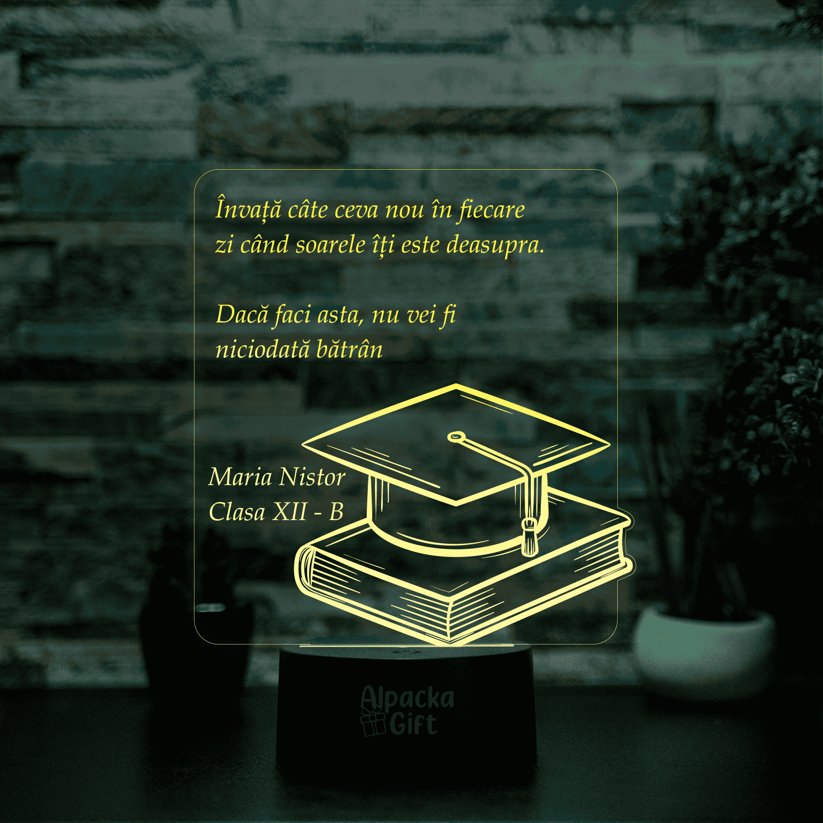 • PERSONALIZABILĂ - personalizeaza lampa ta cu un text pe spatiul liber de pe placheta acrilica.