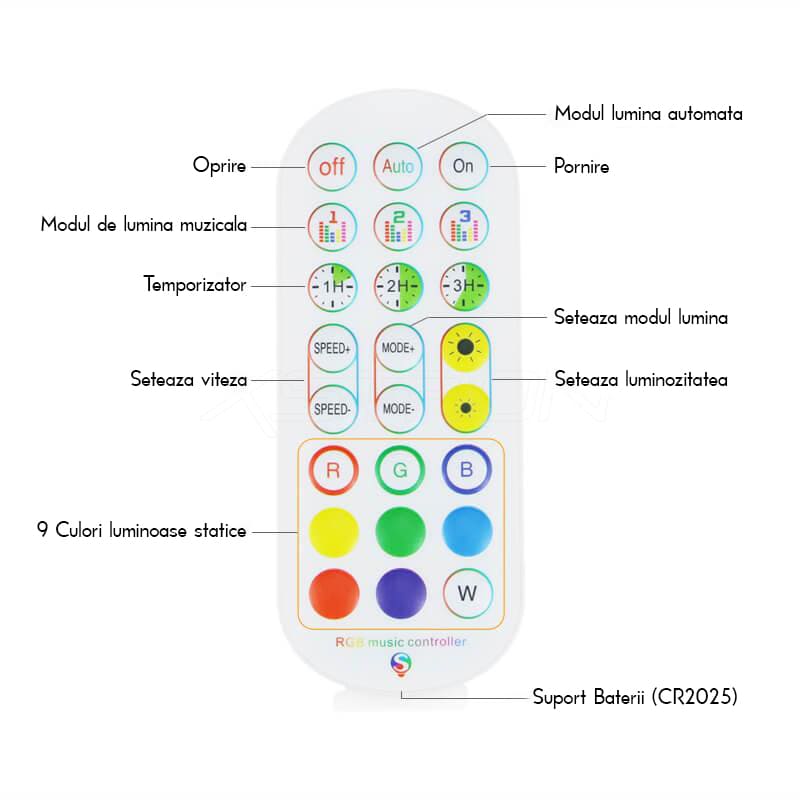 • TELECOMANDA - Culoarea poate fi schimbată și manual de la telecomanda din dotare;