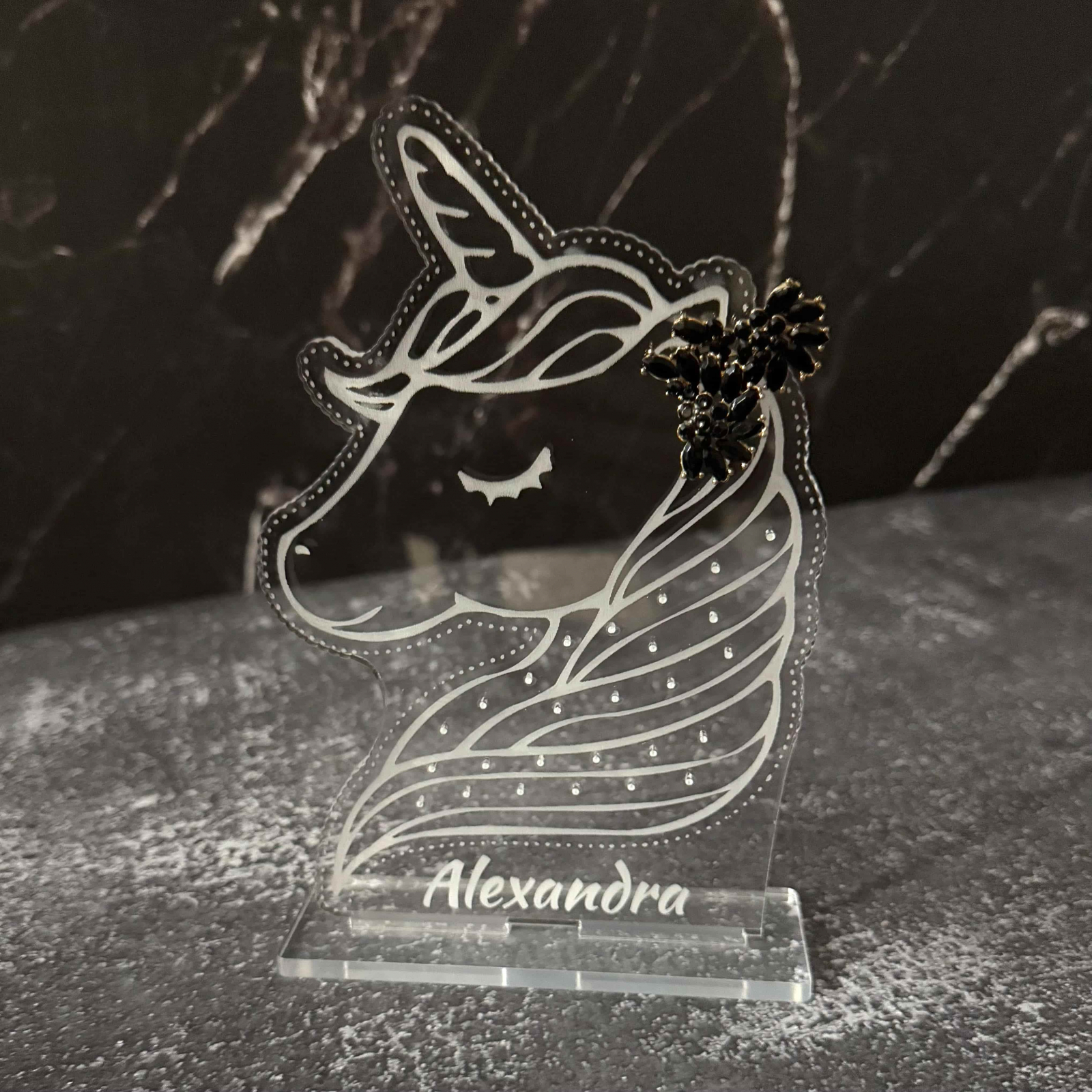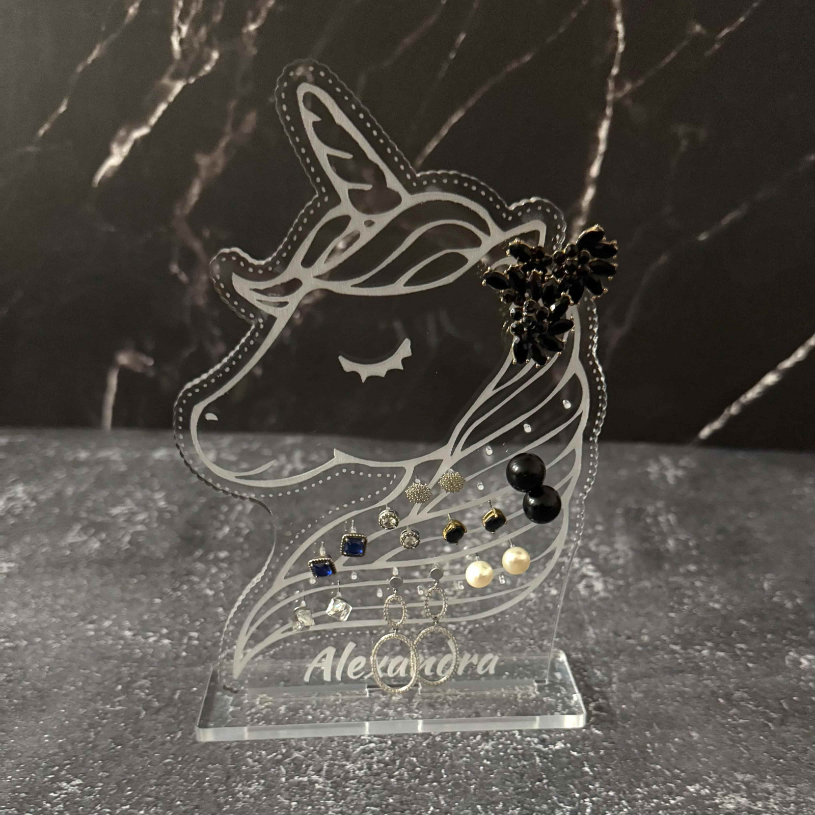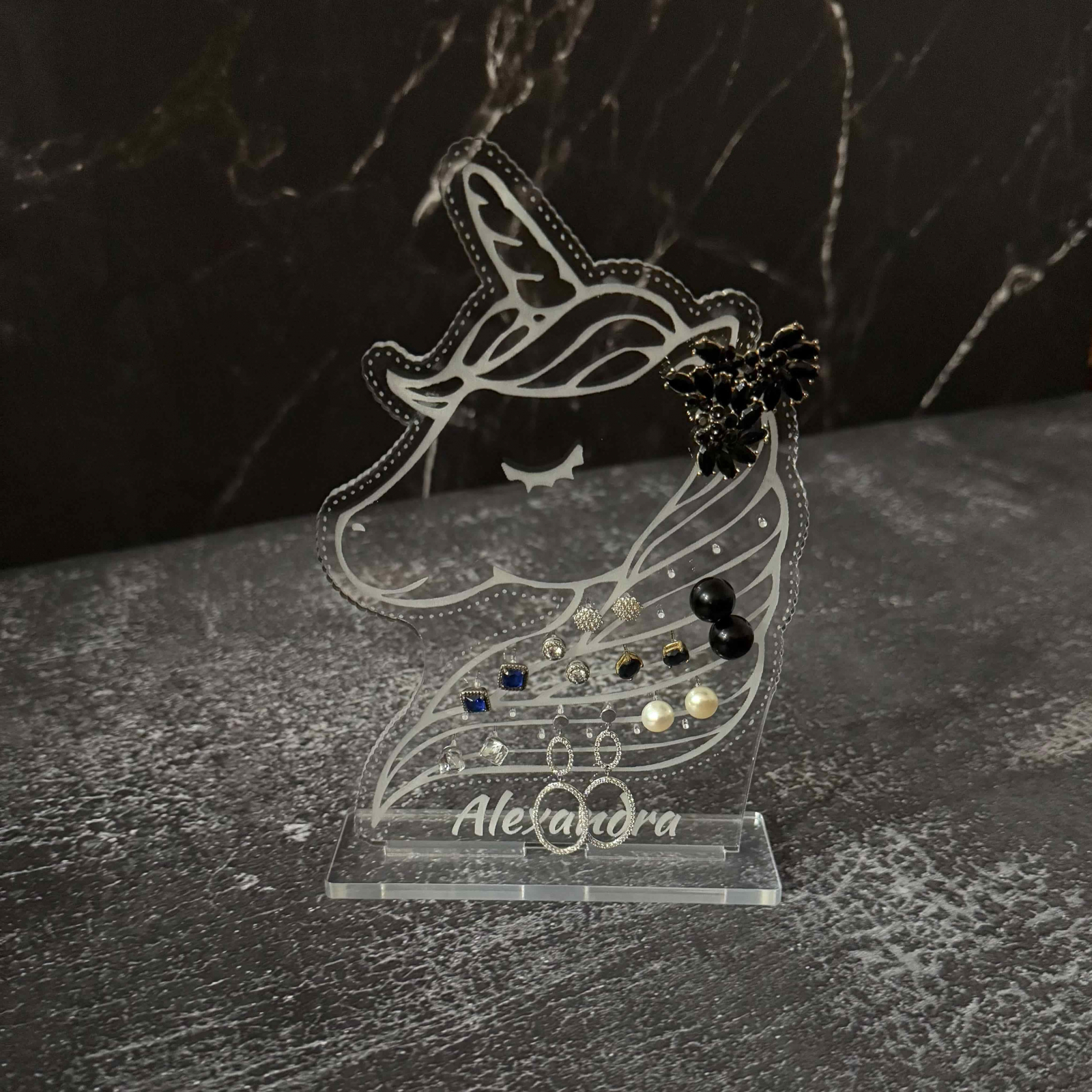 Organizează-ți bijuteriile cu stil și rafinament cu acest suport premium, realizat din sticlă acrilică gravată și tăiată cu laser pentru un finisaj impecabil. Disponibil în două variante, acest suport nu este doar practic, ci și un element decorativ elegant, perfect pentru orice spațiu.